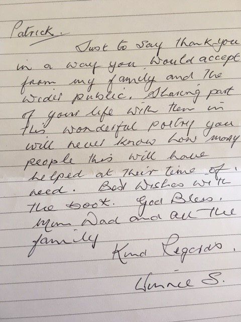 “This collection of poems that Pat has written is both touching and uplifting. It shows the heartache and the love present in his family’s dementia journey.